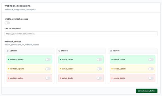 • Você pode personalizar as permissões do webhook para restringir ou permitir notificações de eventos específicos.
